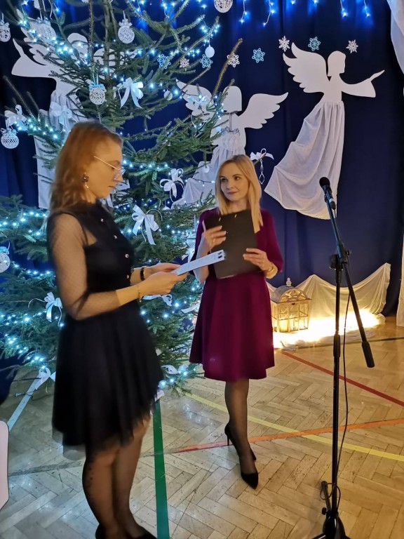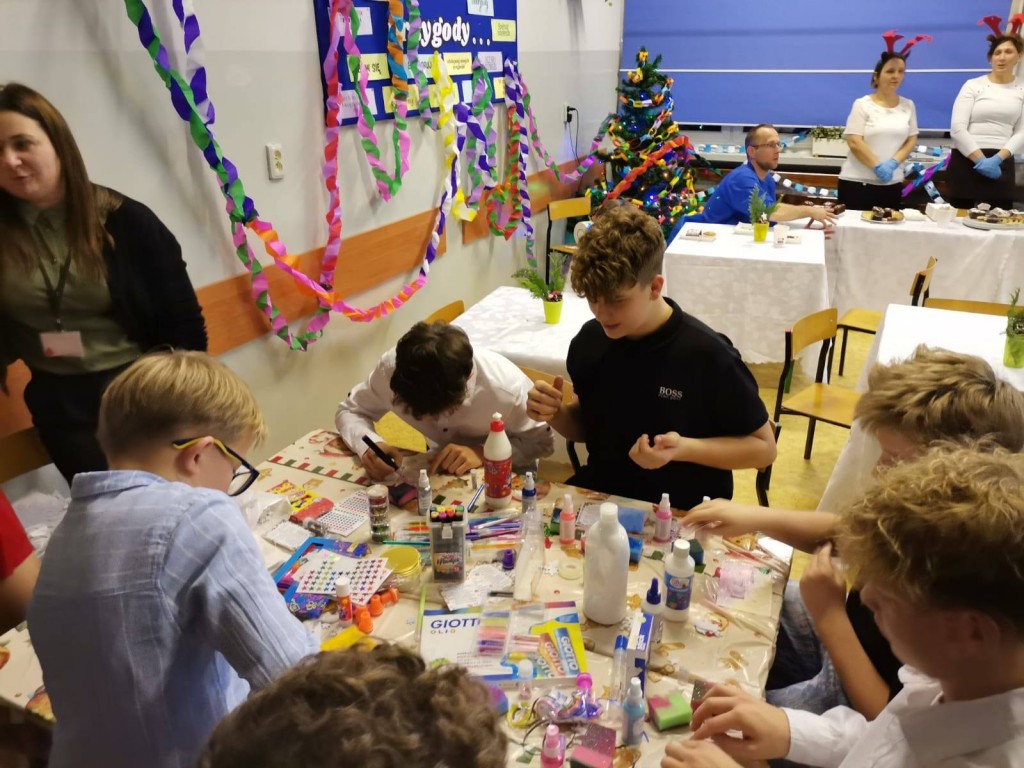 Serdecznie dziękuję wszystkim dzieciom za przepiękne występy - pełne radości, talentu i świątecznego ciepła. Ogromne podziękowania kieruję również do nauczycieli i pracowników szkoły za zaangażowanie oraz włożone serce w organizację wydarzenia. Podziękowania kieruję do rodziców, którzy w znaczący sposób przyczynili się do sukcesu kiermaszu dostarczając domowe wypieki, przygotowując stroiki, ozdoby i dekoracje, a także wspierając placówkę swoją pracą na stanowiskach. Dziękuję Radzie Rodziców za pomoc, wsparcie i aktywną współpracę na każdym etapie przygotowań. Dzięki Wam to wydarzenie było tak wyjątkowe. Słowa wdzięczności należą się także zaproszonym gościom, którzy swoją obecnością uświetnili ten dzień. Cieszymy się, że byliście z nami.