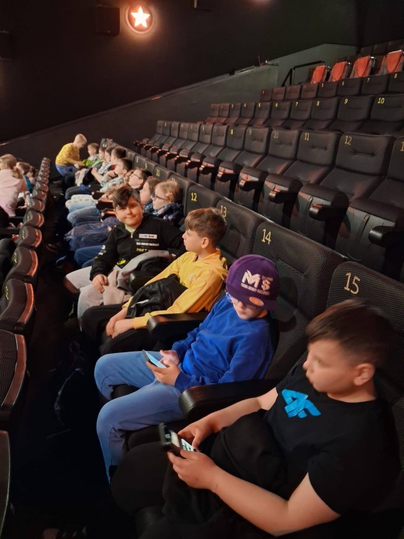 W dniu 19.03.2026r. uczniowie klasy 1a, 2a, 3a i 3b udali się do „Multikina” w Rybniku. Dzieci z zainteresowaniem uczestniczyły w lekcji multimedialnej pt. „Proszę, dziękuję, przepraszam - czyli przepis na dobry dzień”, prowadzonej przez zawodowego aktora, podczas której dowiedziały się, czym są dobre maniery i dlaczego są ważne. Przekonały się, dlaczego warto mówić „proszę”, „dziękuję” i „przepraszam”.