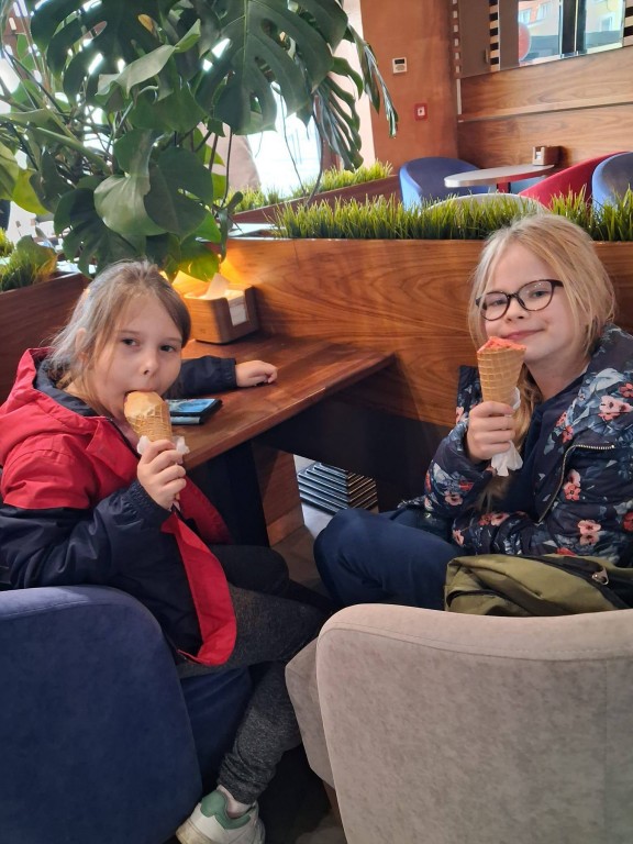 Zrozumiały, że ważne jest nie tylko co mówimy, ale też w jaki sposób. Ponadto zobaczyły, że dobre słowa ułatwiają wspólną zabawę i pomagają się porozumieć. Po lekcji multimedialnej obejrzały zimową opowieść pt. „Północ. Gerda i Kaj”. Jest to poruszająca serce historia o przyjaźni, poświęceniu oraz umiejętności pokonywania strachu. Po kinie wszyscy udaliśmy się na pyszne lody.